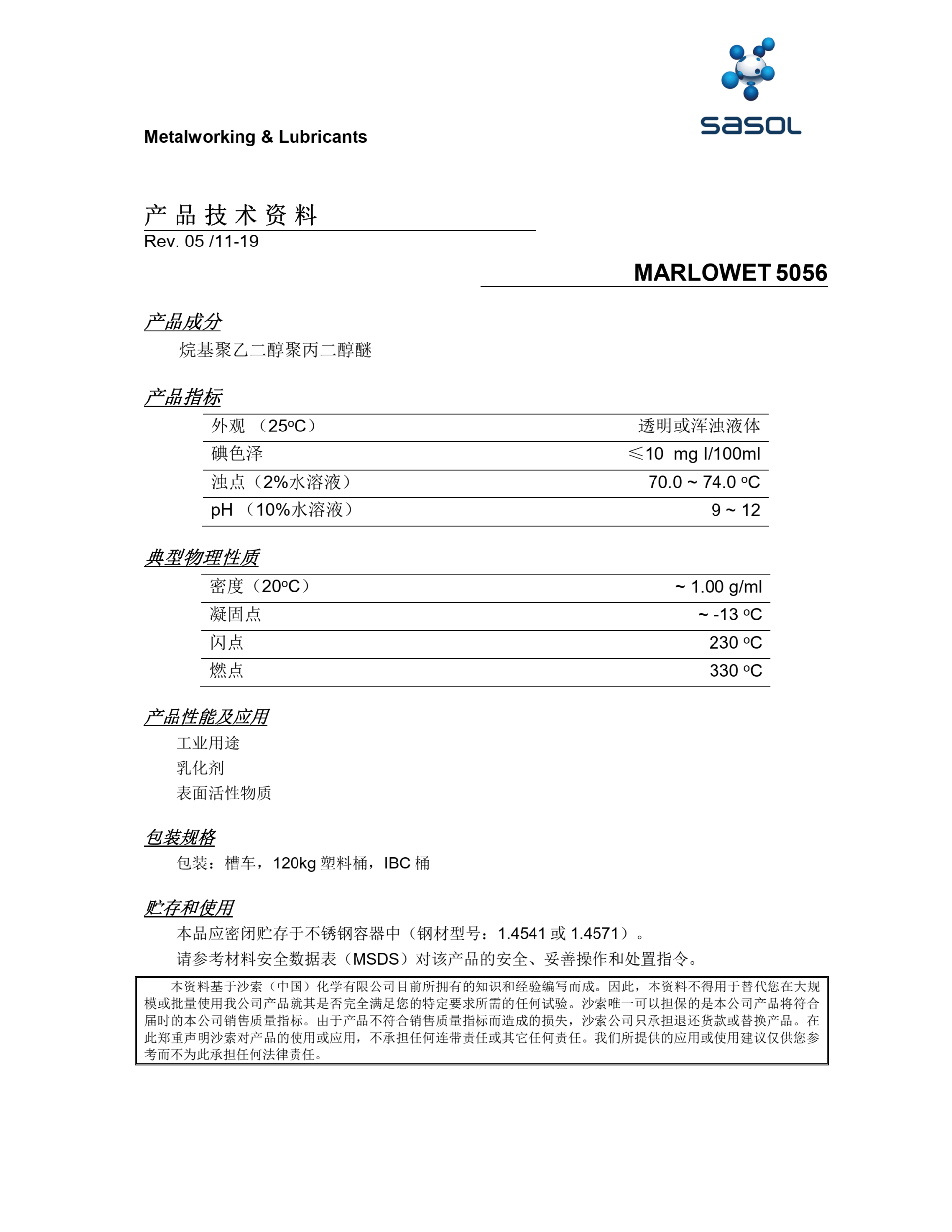 五(wu)金酸銅中(zhong)間體Marlowet 5056是沙(sha)索集團/Sasol産(chan)品,專門爲(wei)電鍍行👼🏾業(ye)研制并已(yi)經經過國(guo)際電鍍藥(yao)水企業及(ji)國内頭💕部(bu)藥水大廠(chang)的長期👹驗(yan)證。