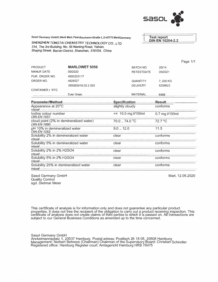 五金(jin)酸銅(tong)中間(jian)體Marlowet 5056是(shi)沙索(suo)集團(tuan)/Sasol産品(pin),專門(men)爲電(dian)鍍行(hang)業研(yan)制并(bing)已經(jing)經過(guo)國際(ji)電鍍(du)藥水(shui)企業(ye)及國(guo)内頭(tou)部藥(yao)~水大(da)廠的(de)長期(qi)驗證(zheng)。