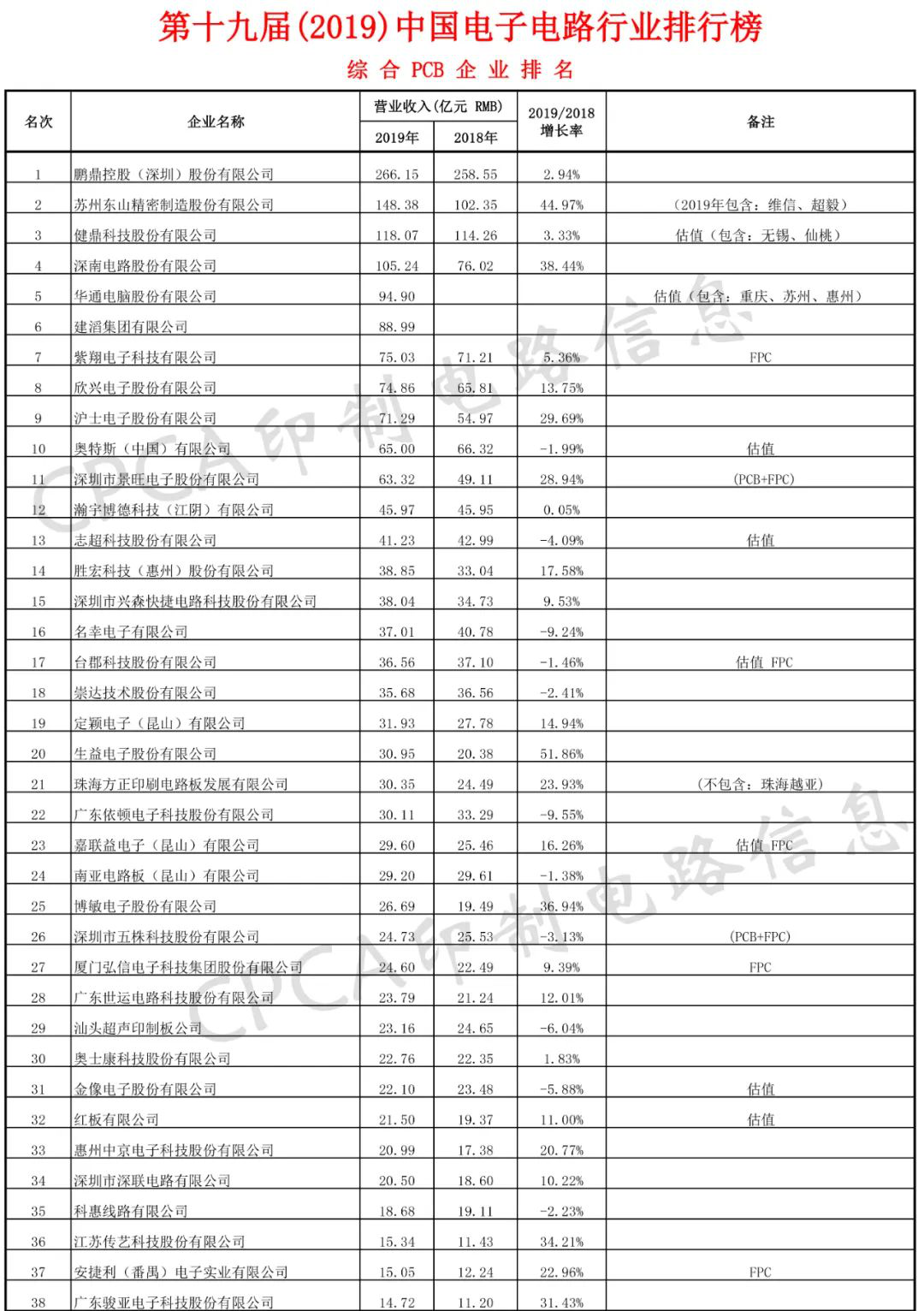 《2019中國(guo)電子(zi)電路(lu)行業(ye)排行(hang)榜》
