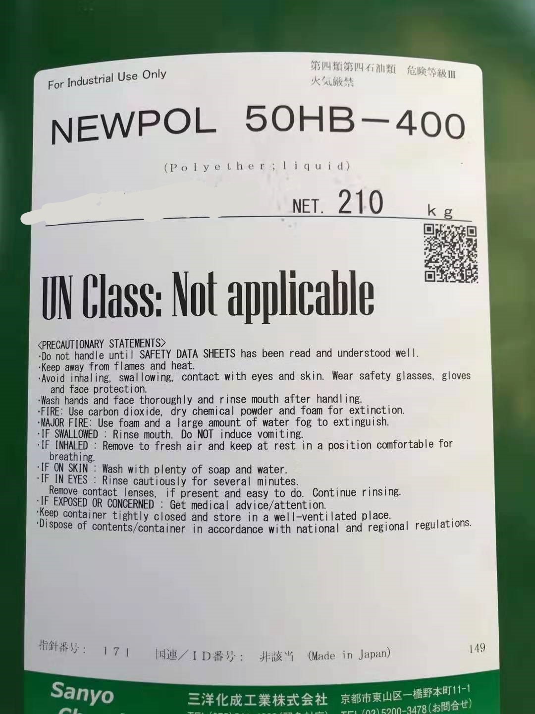 NEWPOL 50HB-400是(shi)一種(zhong)用于(yu)PCB、五金(jin)及塑(su)膠酸(suan)銅電(dian)鍍的(de)深度(du)走位(wei)劑添(tian)加用(yong)👌表面(mian)😥活性(xing)劑,尤(you)其在(zai)低電(dian)位有(you)優異(yi)的表(biao)現。該(gai)産品(pin)是原(yuan)裝日(ri)本進(jin)口, 包(bao)裝爲(wei) 18 KG/CAN 或者(zhe) 210 KG/DRUM。NEWPOL 50HB-400産品(pin)是一(yi)種低(di)分子(zi)💔量複(fu)合聚(ju)醚,主(zhu)鹽含(han)量 100%,PH 4-6,外(wai)觀: 無(wu)🛀🏼色透(tou)明有(you)一定(ding)黏度(du)的液(ye)體,泡(pao)沫非(fei)常低(di),幾乎(hu)沒有(you)泡沫(mo)。濁點(dian)45-50℃。
