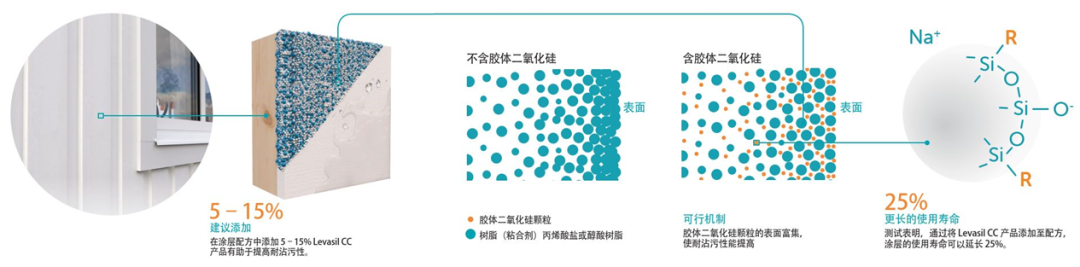 爲(wei)了進(jin)一步(bu)改進(jin)該概(gai)念,我(wo)們在(zai)塗料(liao)配方(fang)中添(tian)加矽(xi)烷改(gai)性的(de)矽溶(rong)膠Levasil PW-30,并(bing)進行(hang)了耐(nai)沾污(wu)性能(neng)的測(ce)試。