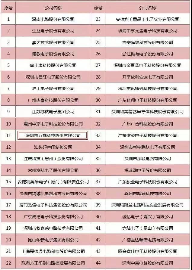 品牌(pai)是企業(ye)乃至國(guo)家競争(zheng)力的綜(zong)合體現(xian),爲了弘(hong)揚中國(guo)電子電(dian)路行業(ye)内的優(you)秀企業(ye),推動行(hang)業和諧(xie)健康發(fa)展,根據(ju)工業和(he)信息化(hua)部推動(dong)企業品(pin)牌建設(she)的指導(dao)精神并(bing)經國家(jia)工業和(he)信息化(hua)部批準(zhun),CPCA啓動了(le)第五屆(jie)中國~電(dian)子電路(lu)行業優(you)秀企業(ye)評選活(huo)動,并于(yu)近日公(gong)布出88家(jia)獲評優(you)秀企😘業(ye)名單,其(qi)中PCB企業(ye)44家,覆銅(tong)闆企業(ye)9家,專用(yong)材料企(qi)業23家,專(zhuan)用設備(bei)、儀器及(ji)軟件企(qi)業9家,環(huan)保企業(ye)3家。五株(zhu)科技再(zai)次榮登(deng)中國電(dian)子電路(lu)行業優(you)秀企業(ye)榜單,可(ke)喜可賀(he)!