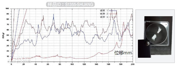 塗碳(tan)鋁箔(bo)與光(guang)箔的(de)電池(chi)極片(pian)粘附(fu)力測(ce)試圖(tu)