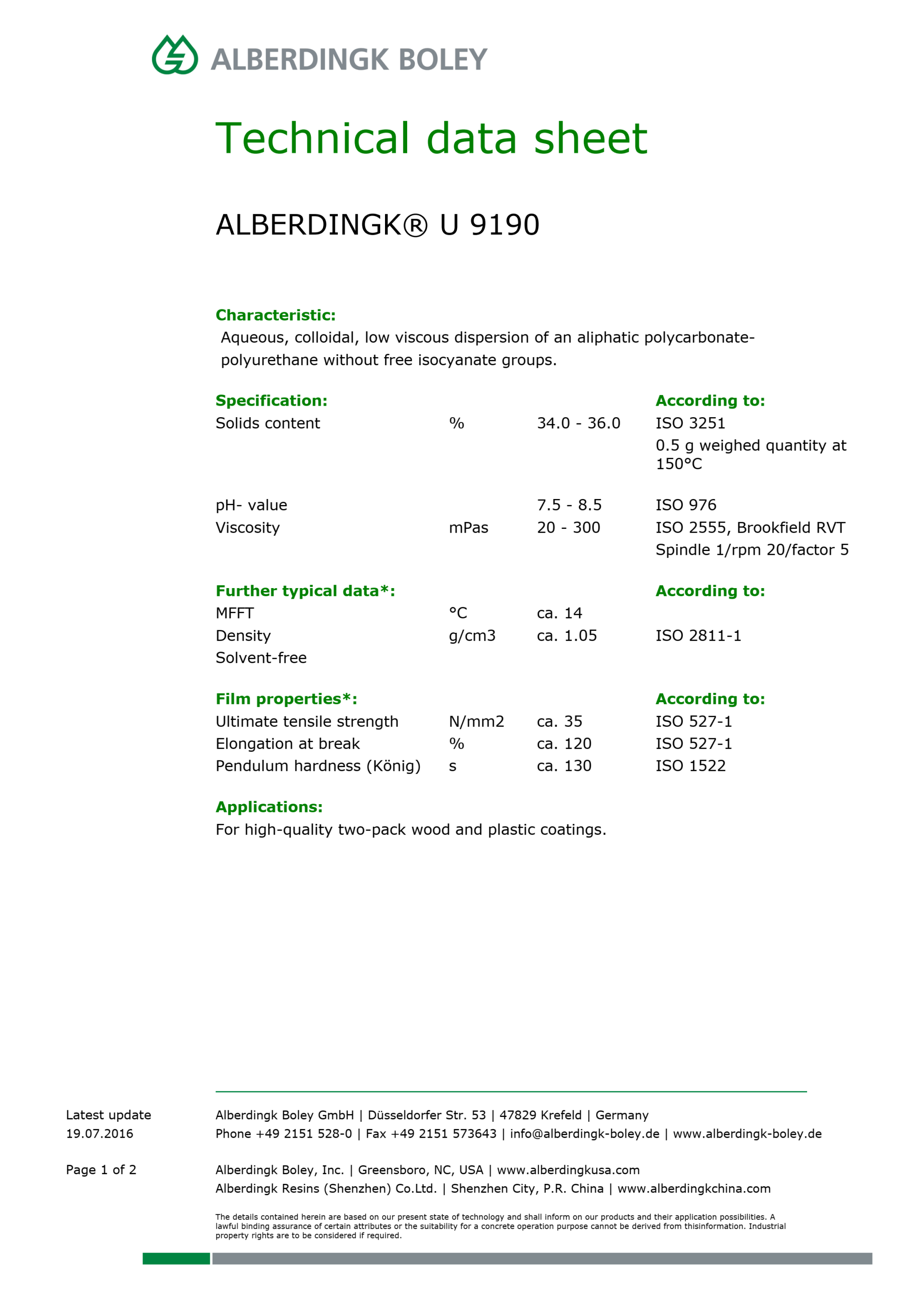 Aqueous, colloidal, low viscous dispersion of an aliphatic polycarbonatepolyurethane without free isocyanate groups.