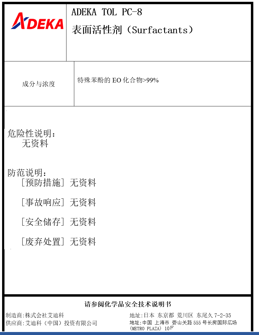 産品(pin)名稱:ADEKA TOL PC-8 文件(jian)編号:00080-00-2
